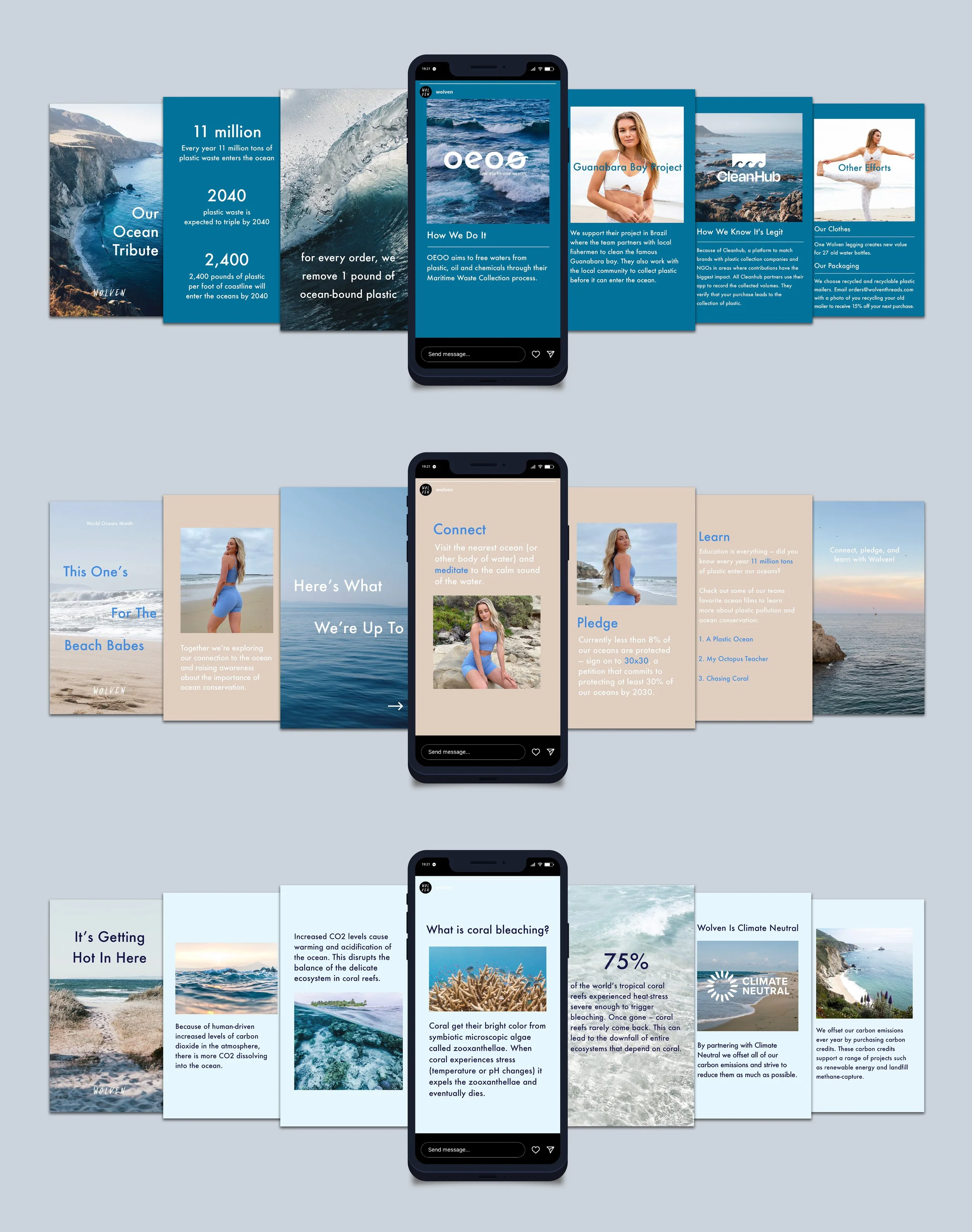 Designed a series of social media and email marketing graphics for Wolven, a sustainable athletic wear brand. The project involved showcasing a diverse range of content, from product promotions to health and wellness tips. These graphics also supported sustainability education campaigns, all aligned with Wolven's mission of promoting eco-conscious living.
